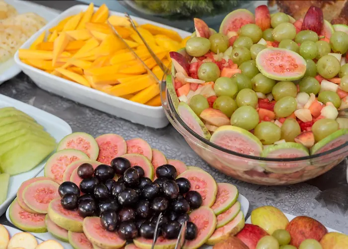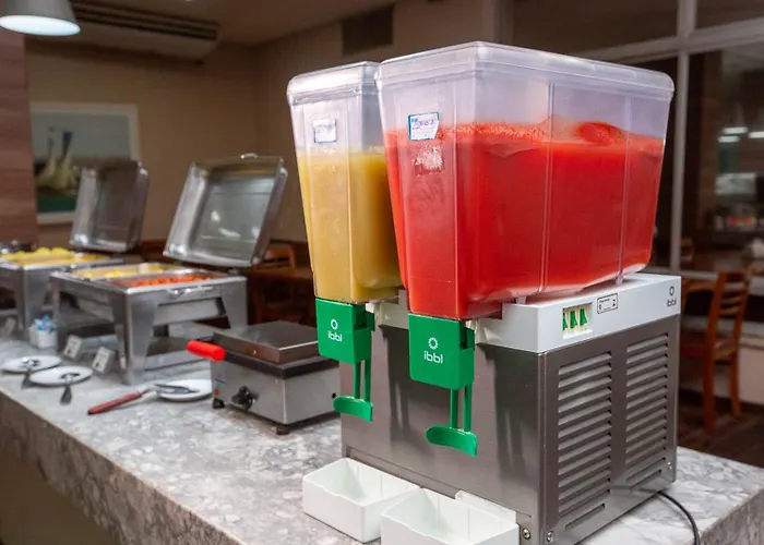 Os hóspedes podem jantar no Pimenta Vermelha, que serve pratos da cozinha sulamericana, ou no Pizzaria Europa situado a cerca de 5 minutos de distância caminhando.